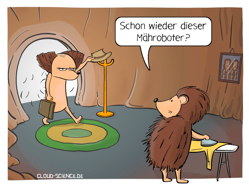 Cartoons zu Robotern in Produktion und Alltag: Cobots, Serviceroboter, Sensorik, Greifer, Wartung und Programmierung. Schwerpunkte sind Mensch-Roboter-Zusammenarbeit, Automatisierung und Logistik.